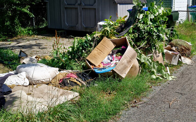 Impact of urban waste  realistic image depicting garbage littering a city sidewalk as an eyesore