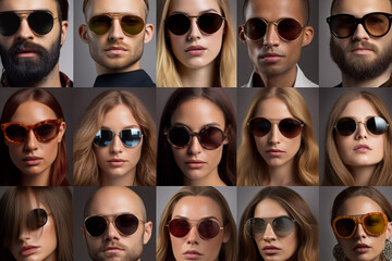 National sunglasses day sa tiled collarge of good looking young people wearing sunglasses generative AI illustration