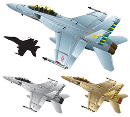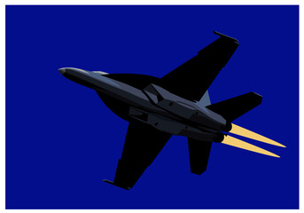 Boeing F-18E Super Hornet. Air power. Afterburner navy jet fighter. Vector image for illustration.