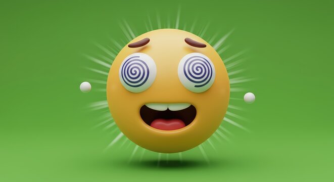 Dizzy yellow emoji face with spiral eyes and wavy lines