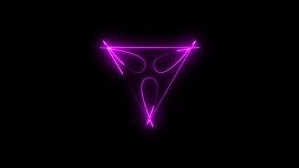 Neon ufo alien animation, rotation around vertical axis. Glowing neon  icon, looped spin. Space alien face, extraterrestrial emoji, humanoid pink colors 4k.