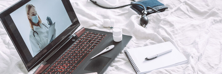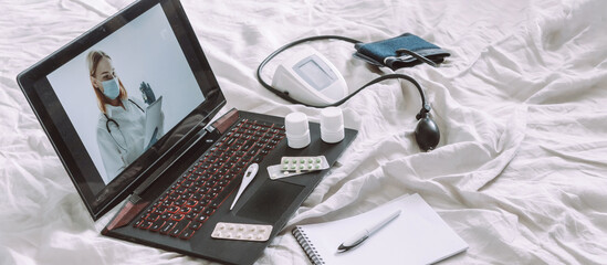 Online Medical insurance. telemedicine, telehealth,patient enters into a contract policy for medical care online, remotely. Medicine online in coronavirus covid 19, lockdown, quarantine.vaccination
