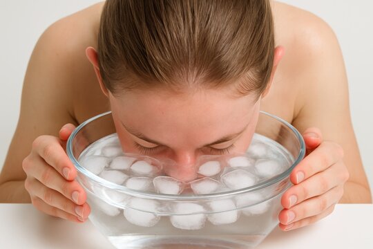 Woman receiving a soothing facial treatment with ice stones to reduce puffiness in a serene spa setting