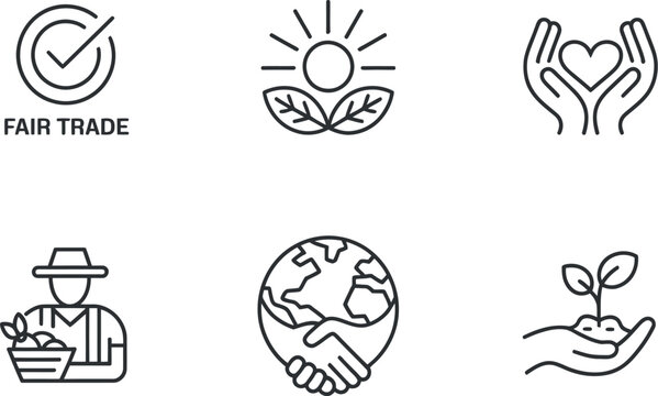 Fair trade line icons set. Ethical business, handshake, sustainability, Organic products, ecofriendly, equality and more vector symbols collection.