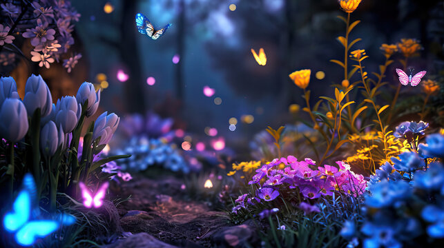 Enchanted Garden Delight: 3D Model Featuring Animated Butterflies, Fairies, and Magical Glowing Flowers, Creating a Whimsical Haven of Nature's Wonders and Ethereal Beauty