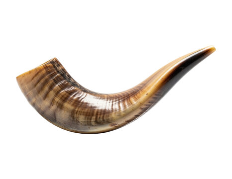Isolated on transparent background, a shofar is displayed in a horizontal position