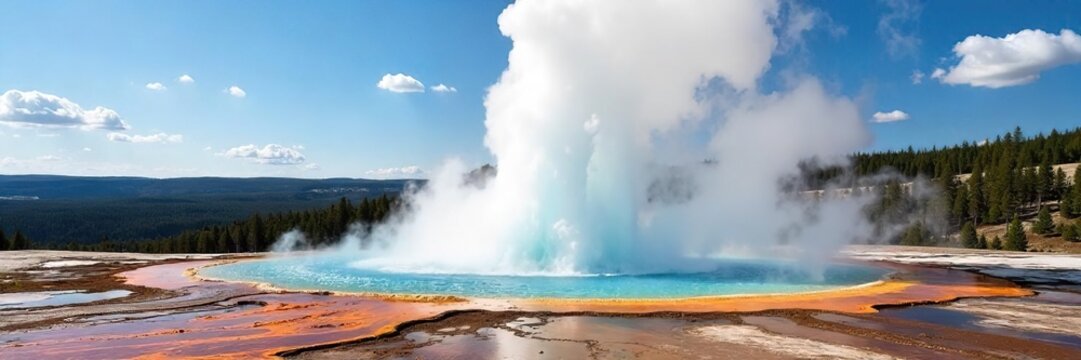 Old Faithful Geyser Eruption Yellowstone National Parks Majestic Geothermal Display