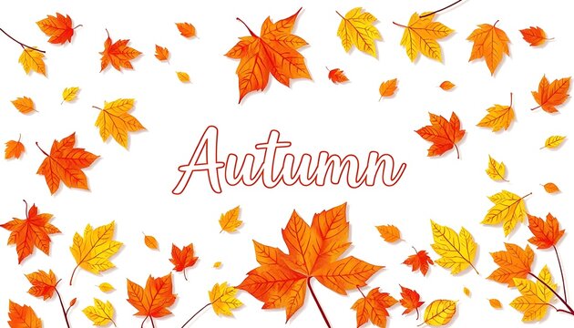 With the arrival of autumn, the fallen leaves begin to disperse. Autumn is written in the middle of the picture. pattern drawing.