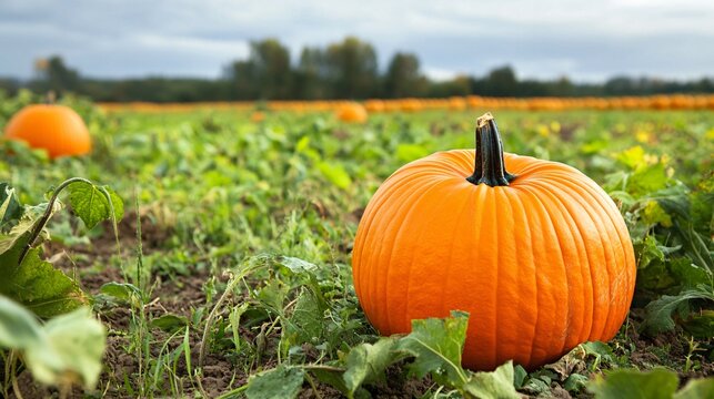 Lush green pumpkin patches signaling the arrival of cozy fall season