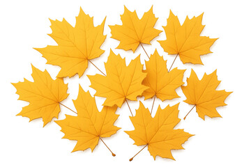 Yellow autumn maple leaves scattered on transparent background representing fall season concept