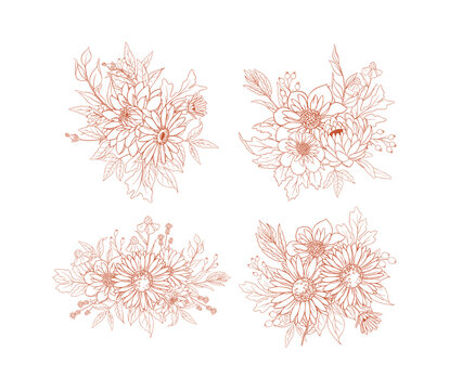 Beautiful floral set with watercolor hand drawn gentle autumn fall flowers. Stock floral illustration. Nature clip art.