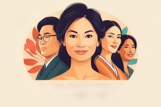 Banner for Asian American and Pacific Islander Heritage month. Beautiful horizontal banner with portrait of the AAPI women and man