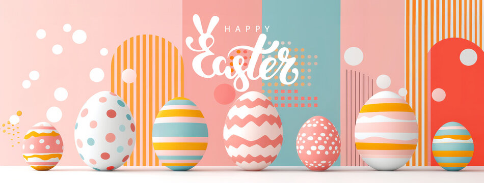 Delightful Easter-themed illustration featuring adorable bunny-shaped eggs in a pastel-colored setting, perfect for holiday greetings and family-friendly content.