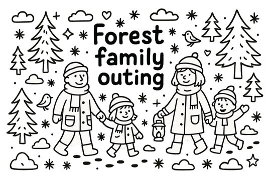 Forest Family Outing. Forest family outing. Hand-drawn doodle illustration of Forest family outing. Family,