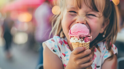Happy family enjoying a vibrant night out at an arcade with colorful lights and games