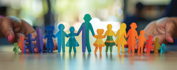Multicoloured paper cutout figures on bright background, symbolising diversity and inclusion.