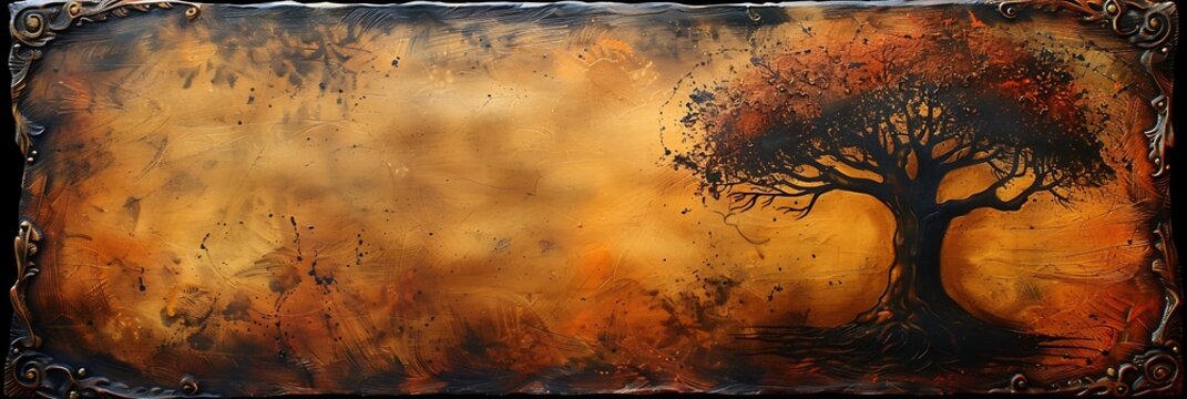Parchmentstyle background highlights a vintage scroll design of a family tree featuring delicately drawn branches with room for customization and captions