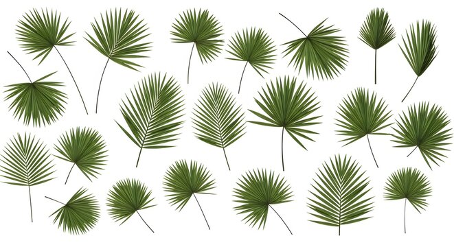 Tropical palm tree assortment on transparent background showcasing coconut phoenix and fan palms for landscape designs and summer themed projects highlighting exotic vegetation and holiday vibes,