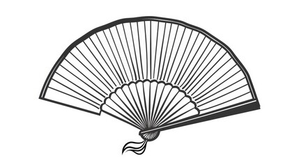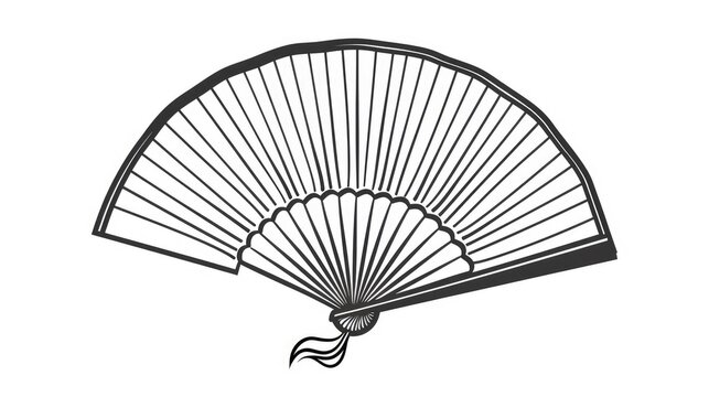Icon of a Chinese Asian hand fan Traditional attire accessory White background isolated fan element Artificial wind creation Symbolic simple doodle for coloring
