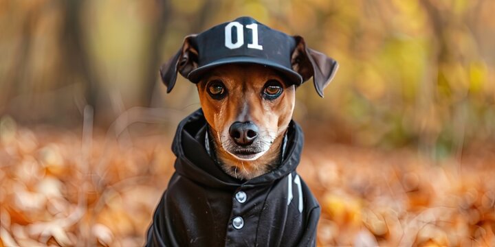 Dog wearing black sports jersey with number 01 on it to root for the home team