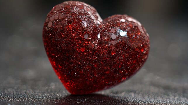 Romantic sparkling red heart with glittering reflections on vibrant red background for valentine’s day celebration, love concept, and romantic holiday decoration