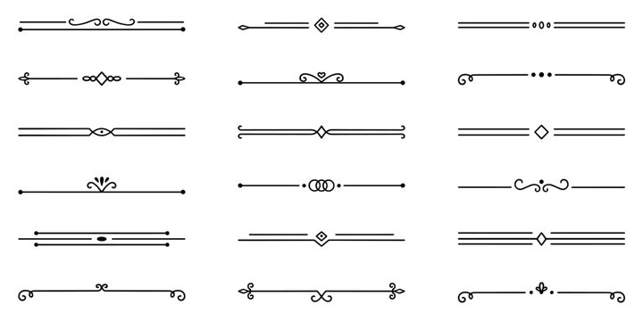Text dividers doodle set. Wedding decorative elements. Divider ornament, borders, vintage line separators. Hand drawn vector illustration isolated on white background