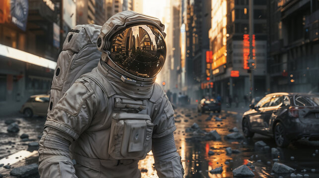 Astronaut exploring martian landscape in futuristic sci-fi adventure