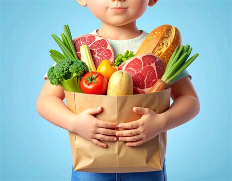 World Food Day: Kid with Groceries - Child Holding a Bag of Healthy Food