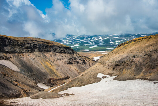 Russia, Kamchatka, Mutnovsky volcano, snowfields