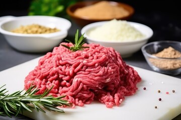 minced meat, pig, beef, and forcemeat, with a clipping path and a white background in focus. Generative AI