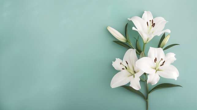 Elegant white lilies with black ribbon, bouquet on white background. Funeral, mourning symbol for obituary, farewell services, condolences, invitations. Floral arrangement perfect for sympathy,