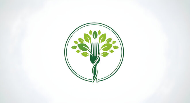 Elegant fork logo design with vibrant green leaves symbolizes fresh organic food and healthy eating, ideal for restaurants, farm to table businesses and nutritional brands