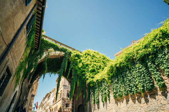View of the Arco Farnese , Arch Farnese in Via Giulia, Rome, Italy - may 2 2024