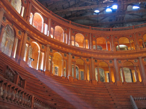 farnese theater from inside in carving wood, parma, italia