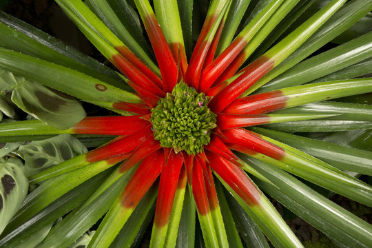 Close-up of Crimson Bromeliad (Fascicularia bicolor)