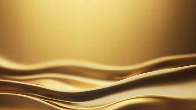 Golden background with waves of fabric, representing flow and elegance associated with luxury products, soft color palette adding opulence, creating an atmosphere that reflects high-end design or fash