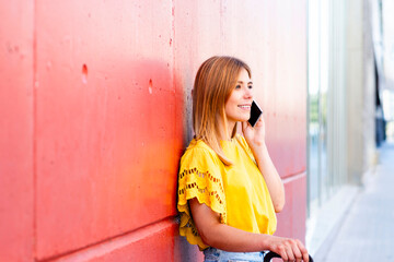 Senior woman engaging in a cheerful phone conversation on national telephone day