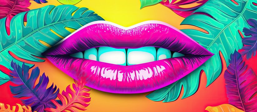 Collage of modern art with trendy urban magazine flair featuring female lips and speech bubbles background, conveying social media, beauty, and fashion concepts in a copy space image.