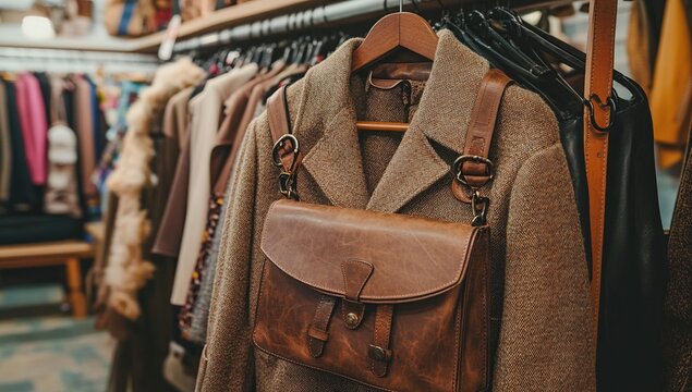 Discover Stylish Brown Tweed Jacket with Leather Bag: Autumn Fashion Trends, Vintage Clothing, Secondhand Shopping, Retro Style