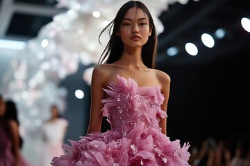 Model woman doing a fashion show in Paris.