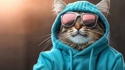 Portrait of Hipster White Cat wearing sunglasses and , animal fashion concept.