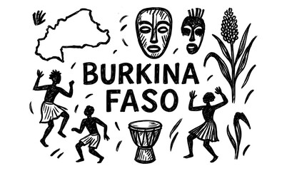 Burkina Faso map vector illustration, scribble sketch Burkina Faso