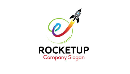 A dynamic and creative badge for a startup, featuring an abstract rocket icon to symbolize innovation and forward-thinking, with a bold color palette of red and black