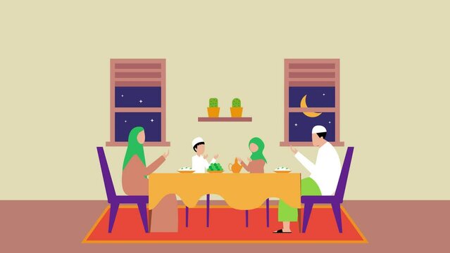 Muslim family break fasting in a holy month at home