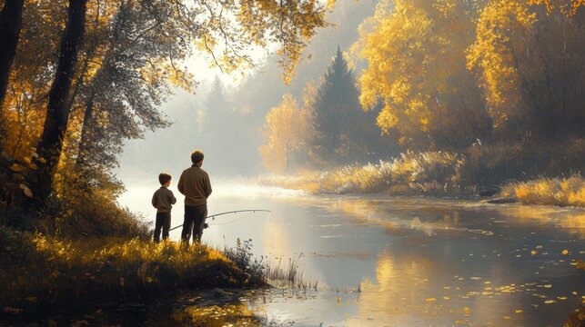 Father and son bonding on national hunting and fishing day