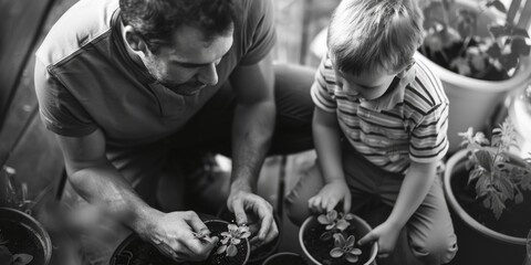 A father-son duo stands before a door, capturing a moment of connection and responsibility