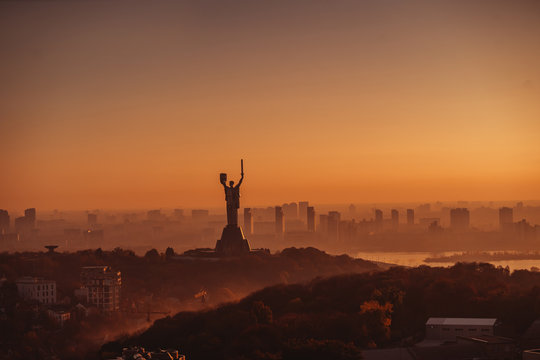 Mother Motherland monument at sunset. In Kiev, Ukraine.