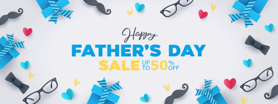 Happy Father's Day. Father's day big sale. Banner vector for social media ads, web ads, business messages, discount flyers and big sale banners.