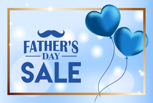 Father’s Day sale background, flying heart shaped balloons on blue bokeh lights, Vector Illustration