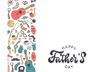 Father's day greeting card, poster, banner, print, invitation design. Decorative border from hand drawn doodles and space for text.